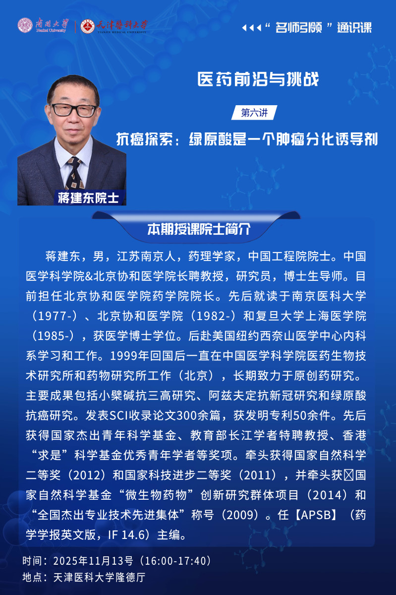 课程预告 | 蒋建东院士:抗癌探索 绿原酸是一个肿瘤分化诱导剂