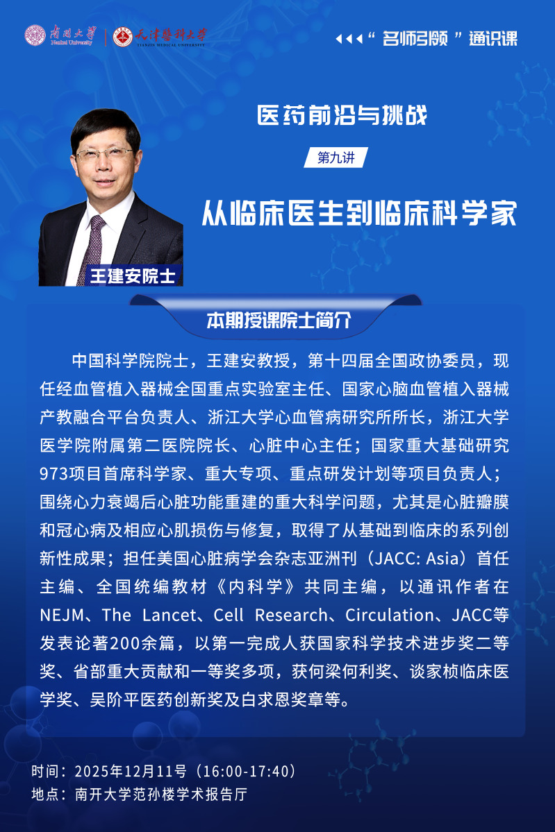 名师引领通识课“医药前沿与挑战”