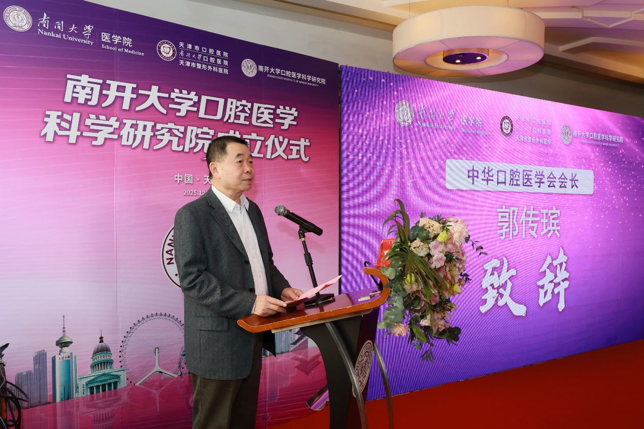 中华口腔医学会会长郭传瑸教授高度肯定南开大学在医学领域的发展魄力,并表示学会将全力支持研究院建设,助力其在人才培养、科技创新和临床转化方面发挥示范作用。